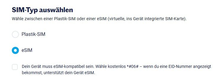 Lebara Auswahl der eSIM direkt bei der Bestellung (Prepaid und Postpaid)